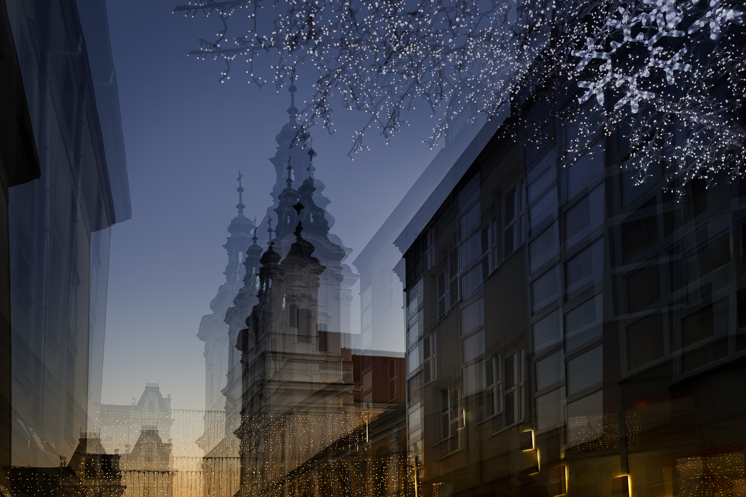 ... pohled vzhůru v centru vánočního Uherského Hradiště ...