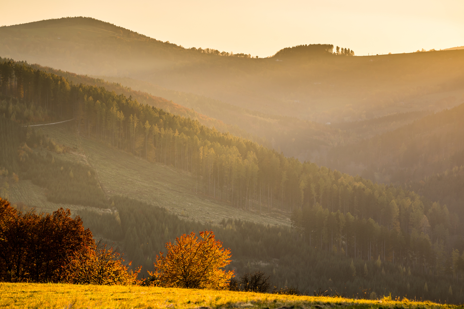 Podzimní výhledy z Žítkové před západem slunce.