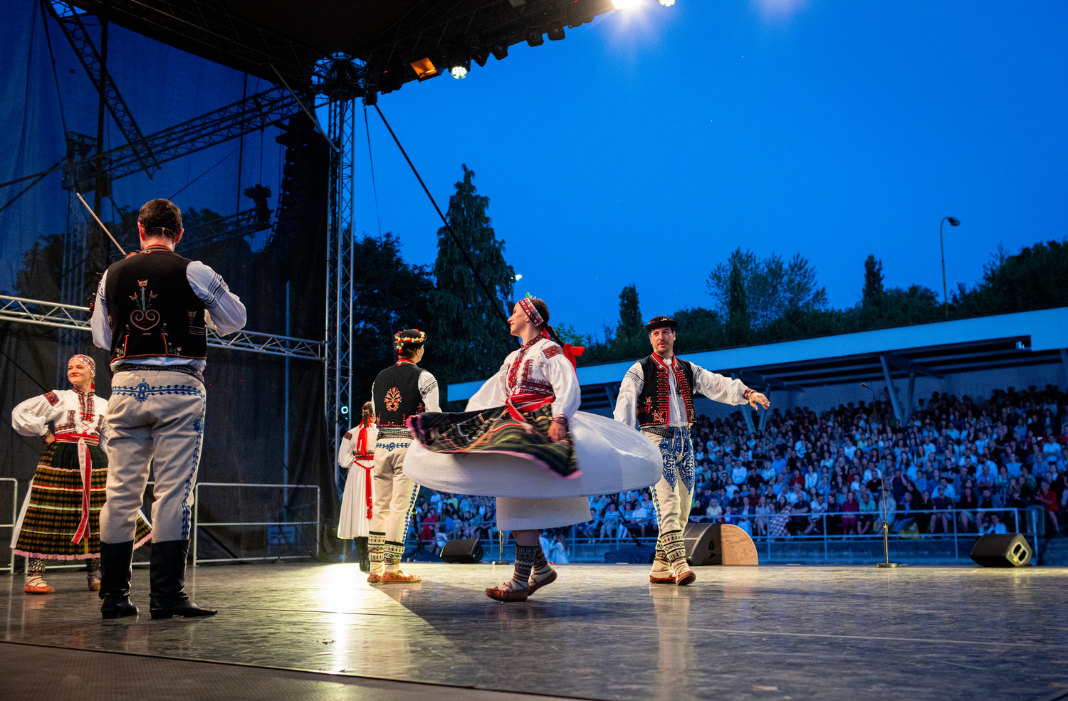 Pohled ze zákulisí na vystoupení VUS Ondráš během Dolňáckých slavností v Hluku