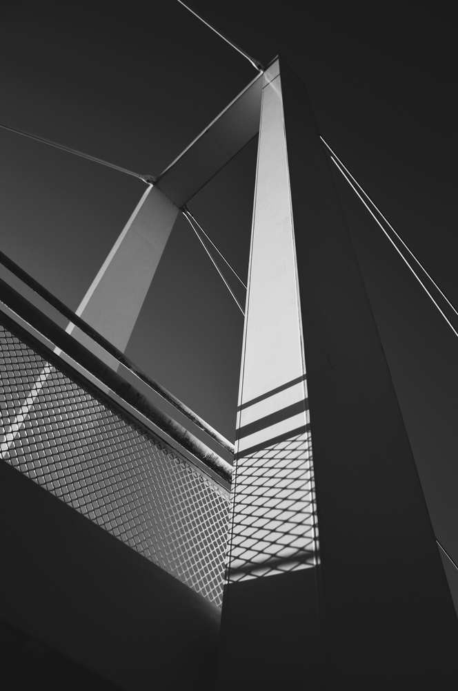 mostní konstrukce z podhledu v prudkém slunci