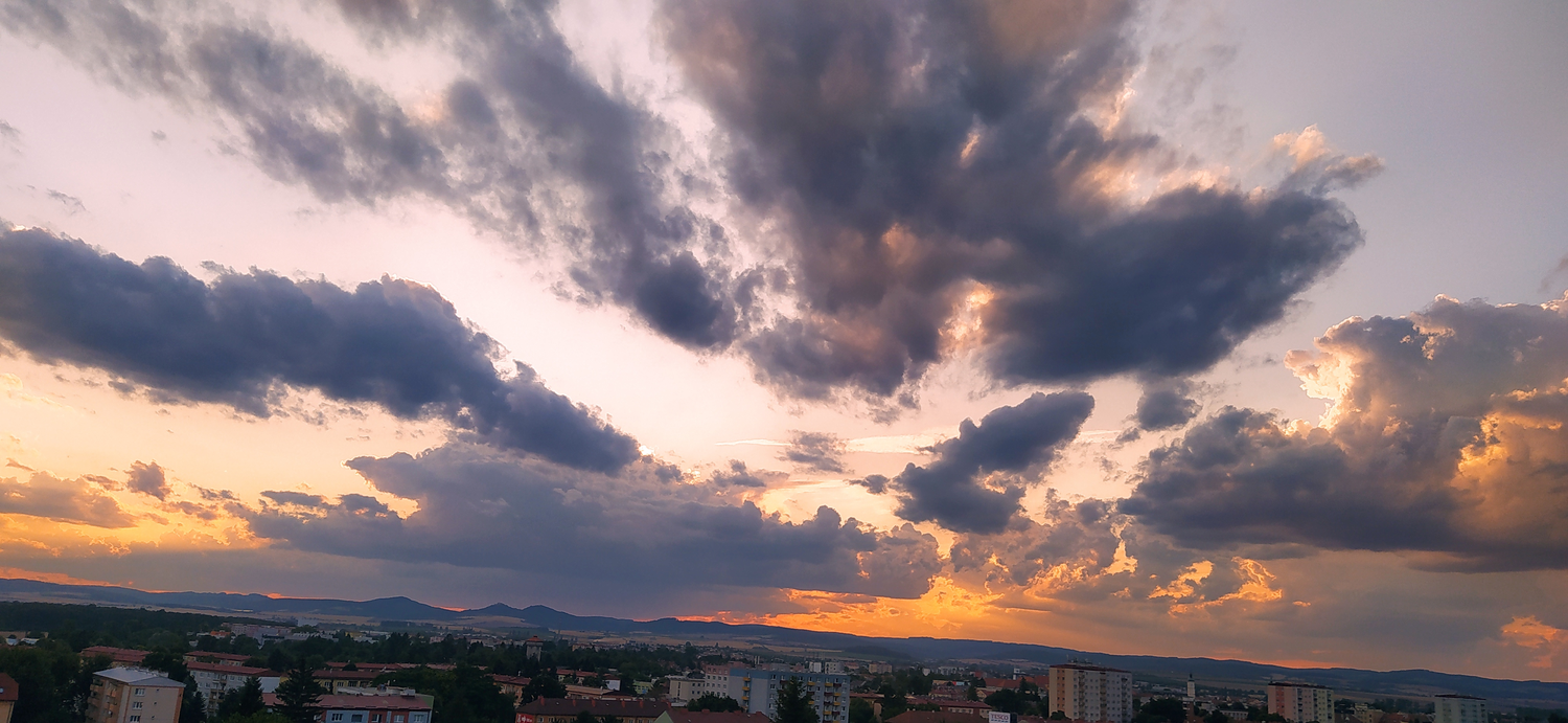 Pohled na západ slunce nad městem z Výšiny sv. Metoděje
