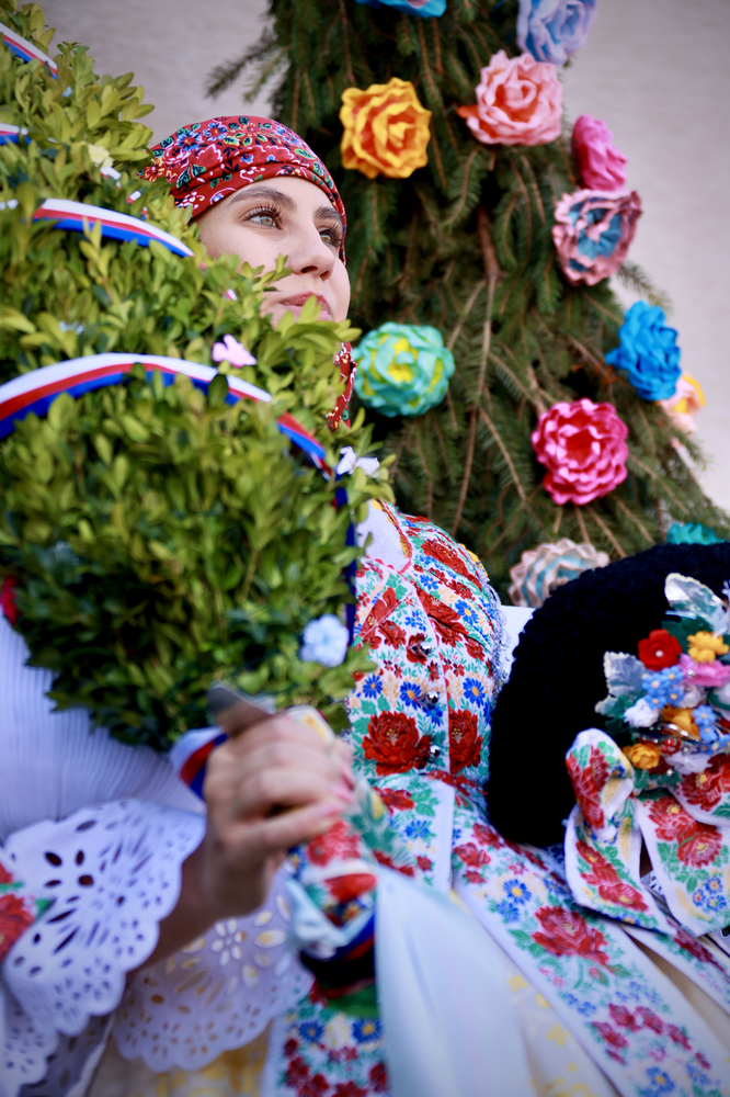 Mladší stárka Štěpánka před domem při svém proslovu. Hody Kněžpole 2025
