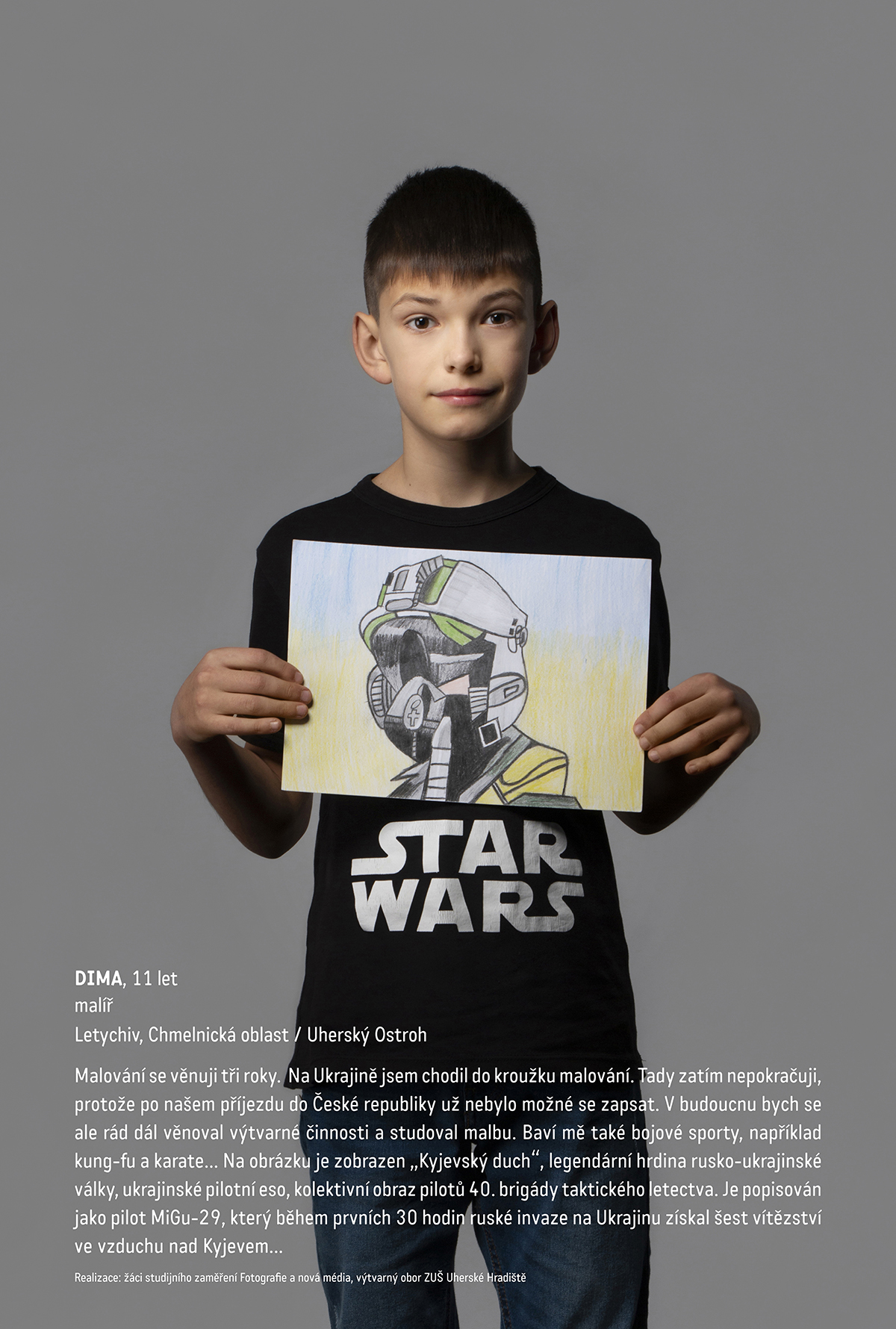 Soubor portrétů, který v rámci výstavy Ohlédnutí 2022 vytvořili žáci Základní umělecké školy Uherské Hradiště, představuje tváře mladých Ukrajinců, kteří byli nuceni v důsledku ruské agrese na Ukrajině opustit domovy a své nové útočiště nalezli v regionu Uherskohradišťska. Koncept na ně nahlíží skrze jejich zájmy, odbornosti, ve kterých se vzdělávají, zdokonalují a připravují pro svou budoucí profesi, pro život v dospělosti. Představuje je jako rodící se osobnosti, které chtějí rozvíjet svůj talent a mít před sebou budoucnost s příležitostmi pro uplatnění nabytých schopností. V této nezištné a upřímné víře ve smysluplnou budoucnost se shodují s mladými lidmi u nás, ale i kdekoliv jinde na světě. Pohledy jejich očí tak představují primární ryzí tvořivou sílu jako protiklad negativních a destruktivních tendencí, tyranie, lží a nenávisti.