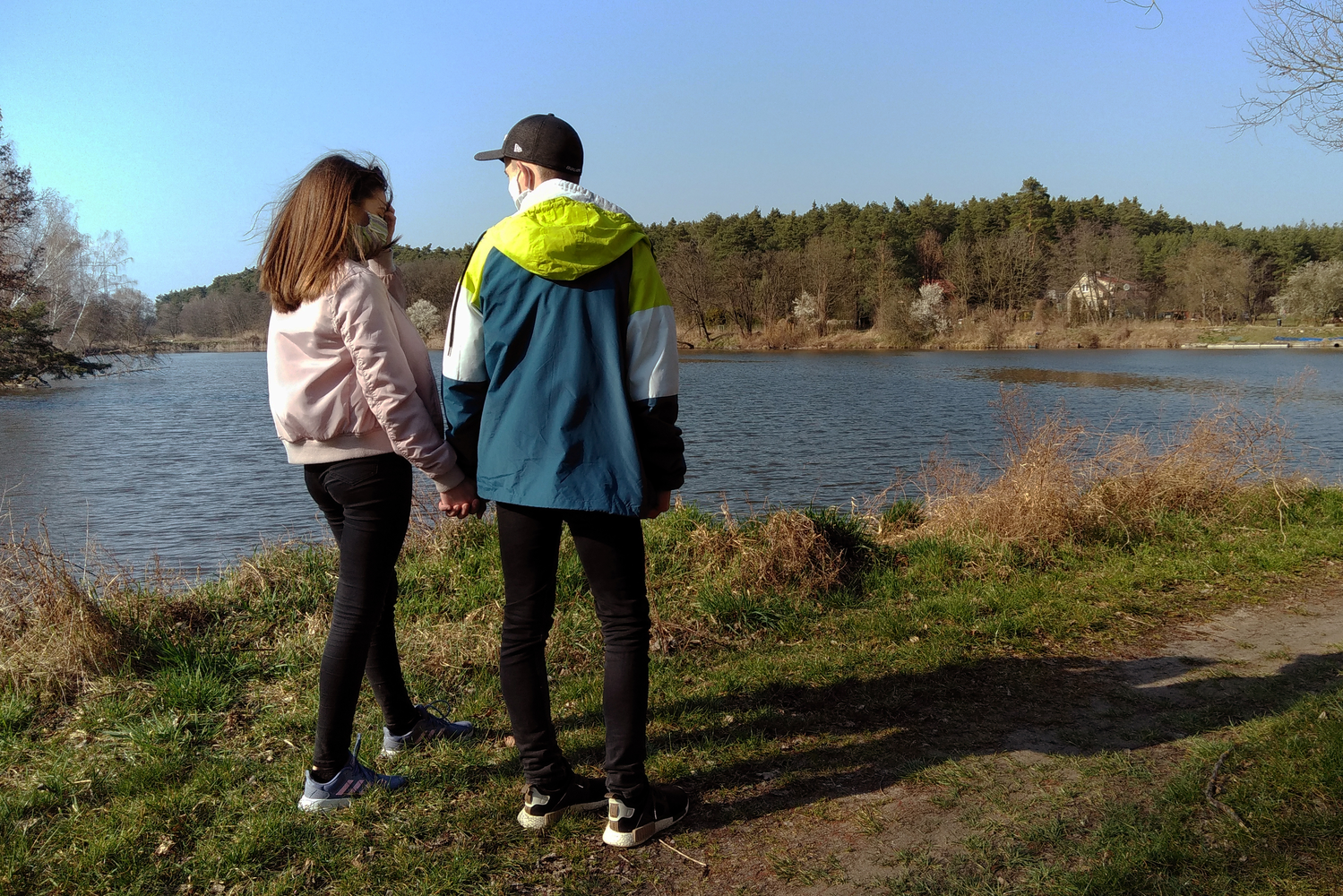 Milenci u jezírka v lese: Po vypuknutí pandemie Covid-19 byly roušky povinné všude a pro všechny. Kromě několika specifických vyjímek, lidé nesměli vycházet ven. S příchodem jara někteří přesto vyrazili do přírody. Měli však obavy z toho, co bude, pokud budou venku zastiženi (a nebo je někdo nahlásí).