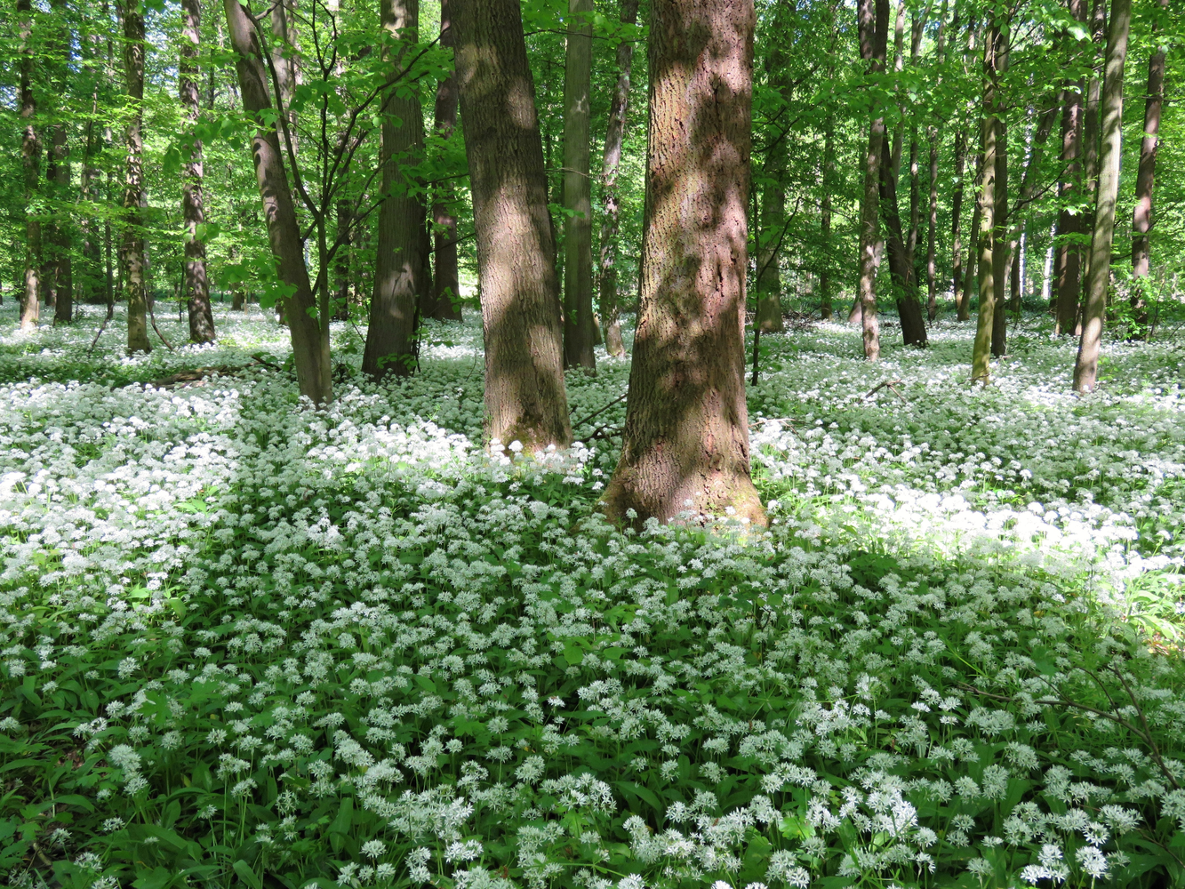 rozsáhlý porost česneku medvědího v lužním lese