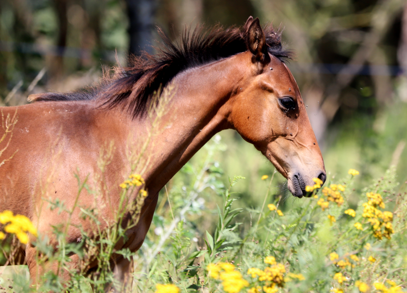 jeden ze čtyř koňů, kteří pastvou a rozdupáváním luk pomáhají návratu bohatšího biotopu ve zdejší ptačí rezervaci