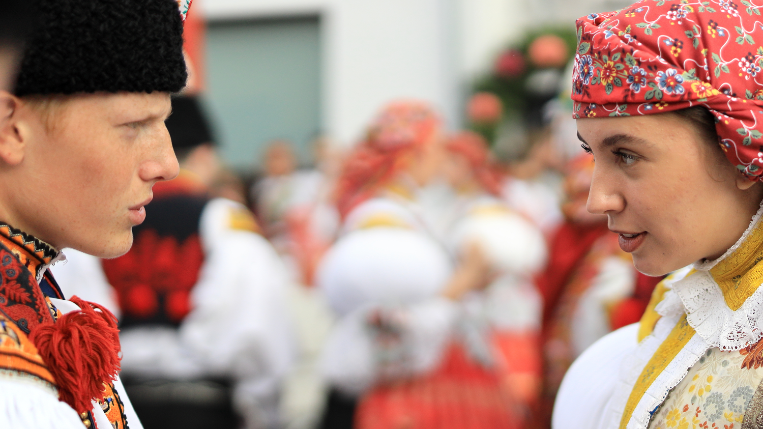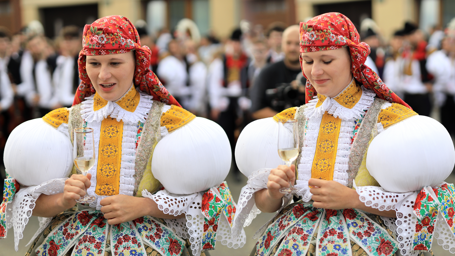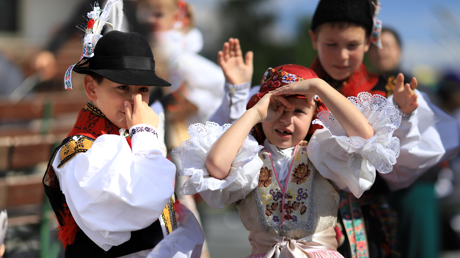Na děvčice aj šohaje radosť sa podívať. Rukávce naškrobené, bilučké jak snih, pantle vypiglované. Na děvčice aj šohaje radosť sa podívať. Rukávce naškrobené, bilučké jak snih, pantle vypiglované.