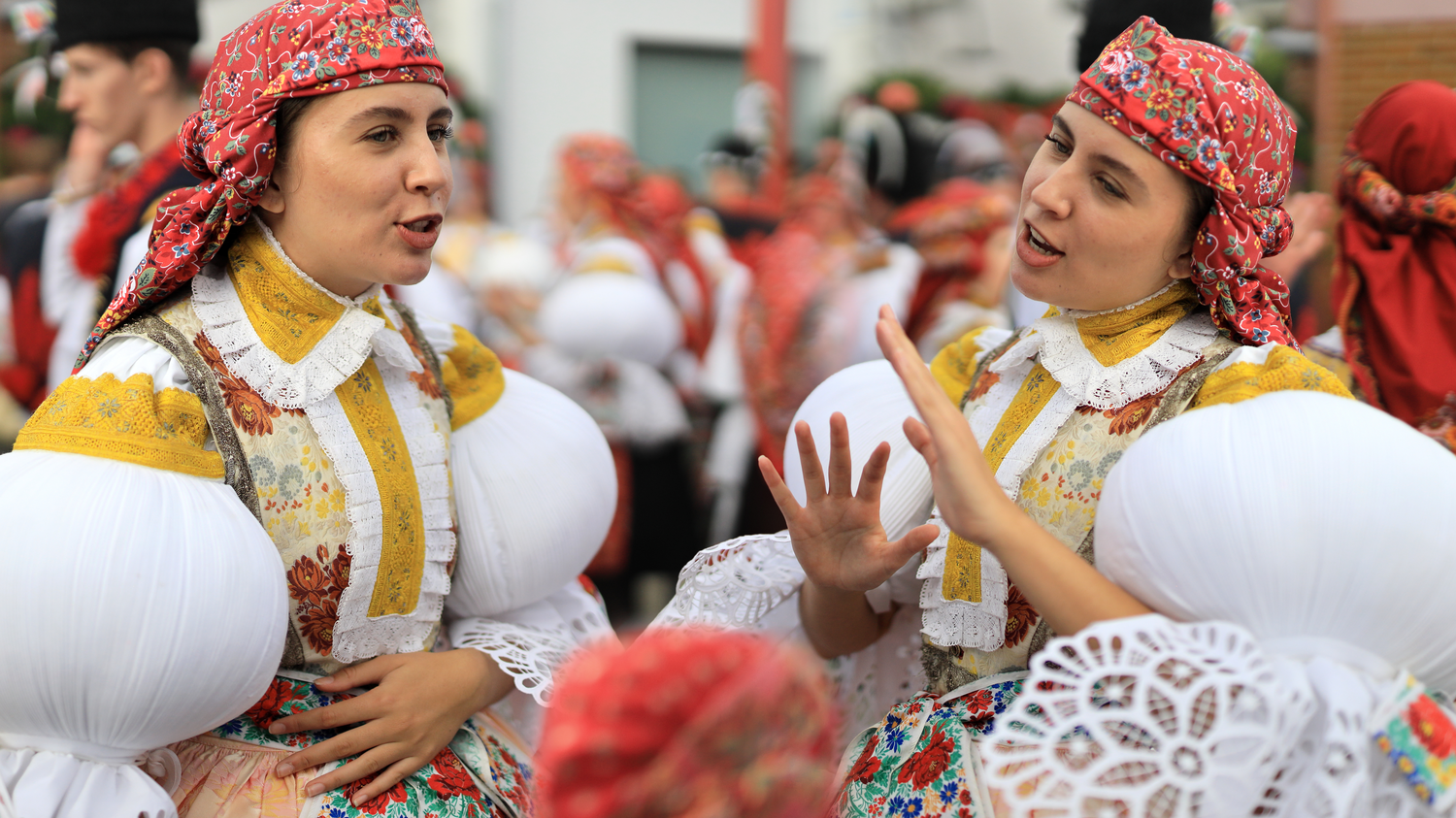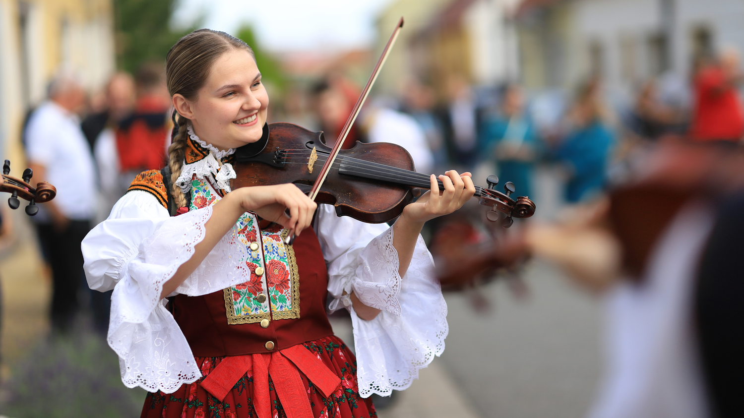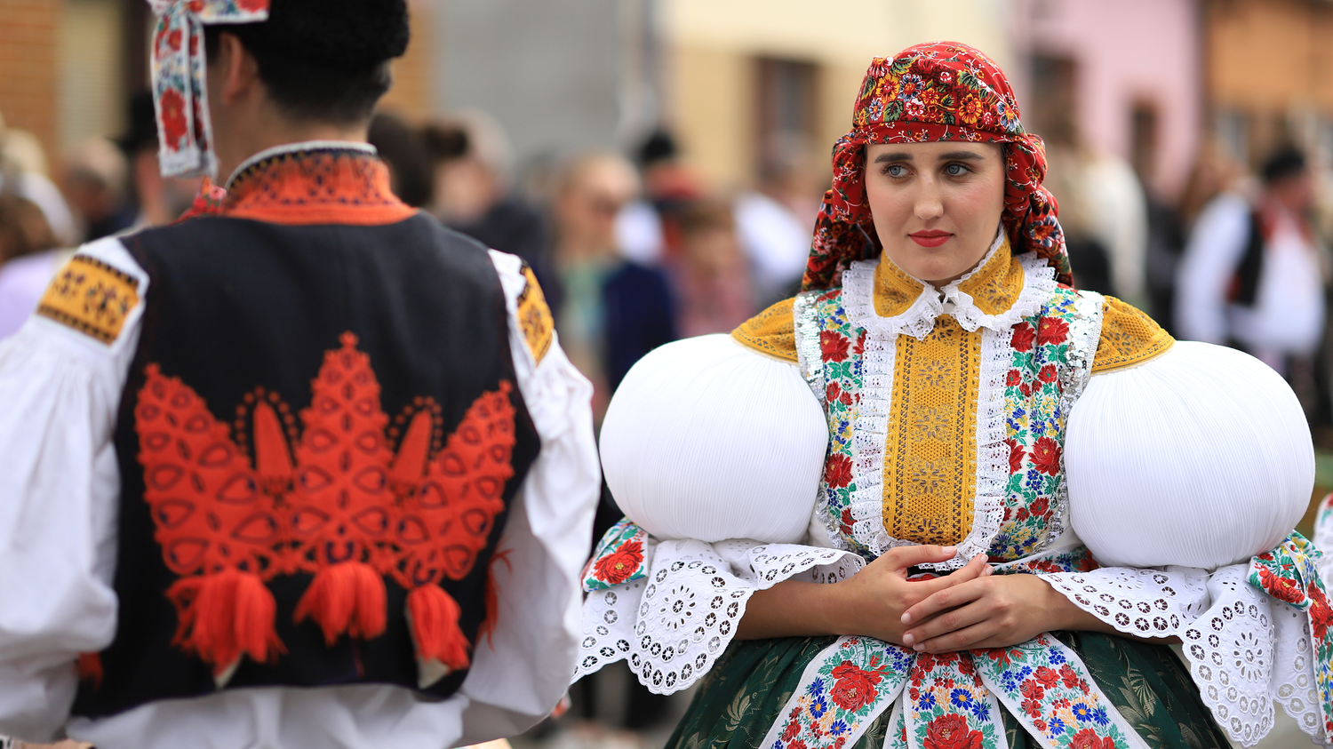 Na děvčice aj šohaje radosť sa podívať. Rukávce naškrobené, bilučké jak snih, pantle vypiglované. Na děvčice aj šohaje radosť sa podívať. Rukávce naškrobené, bilučké jak snih, pantle vypiglované.