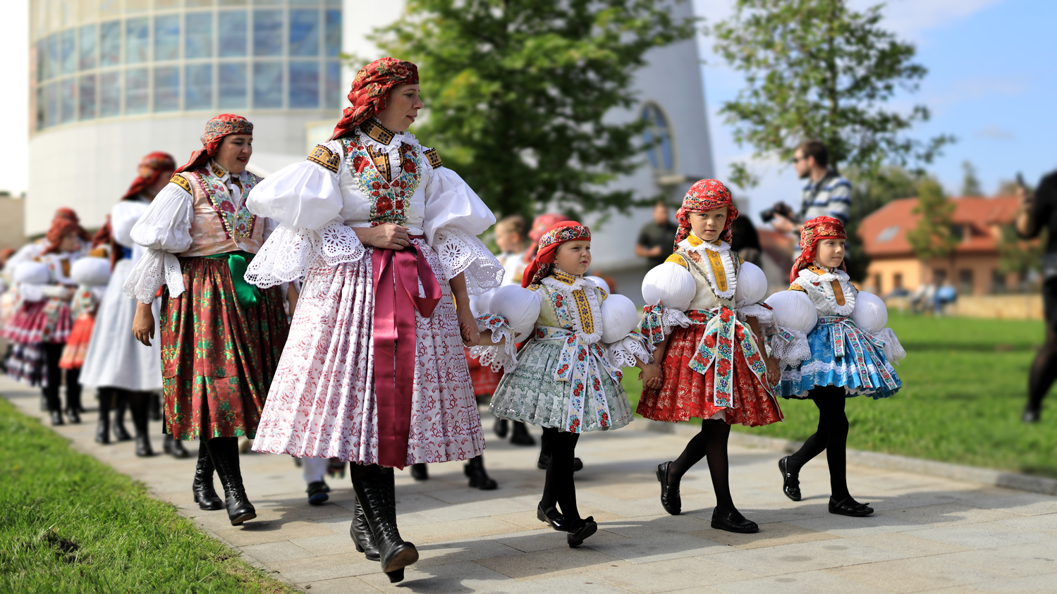 Děvčice vykráčajú, pamatujú zo školky. Každá vypraná, naškrobená aj vypiglovaná jak kytička. Děvčice vykráčajú, pamatujú zo školky. Každá vypraná, naškrobená aj vypiglovaná jak kytička.