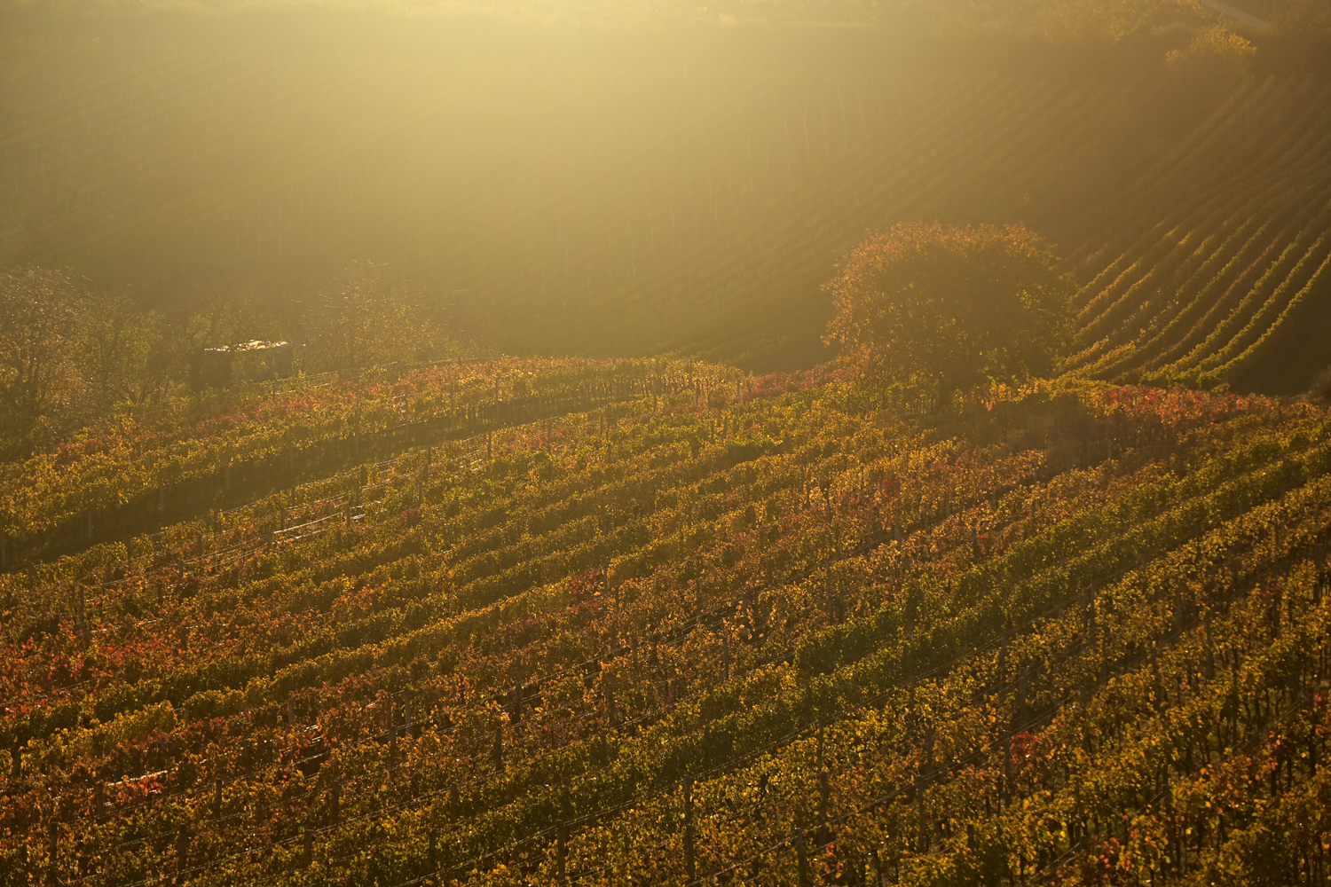 Slavná čejkovická vinice v podzimních barvách a protisvětle.