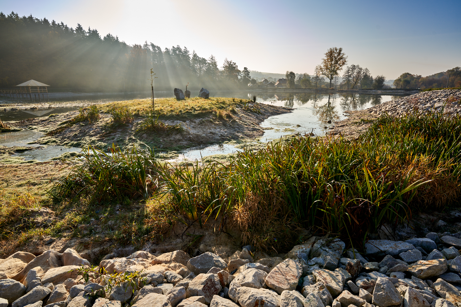 Podzimní napouštění březolupského rybníka po letních opravách hráze.