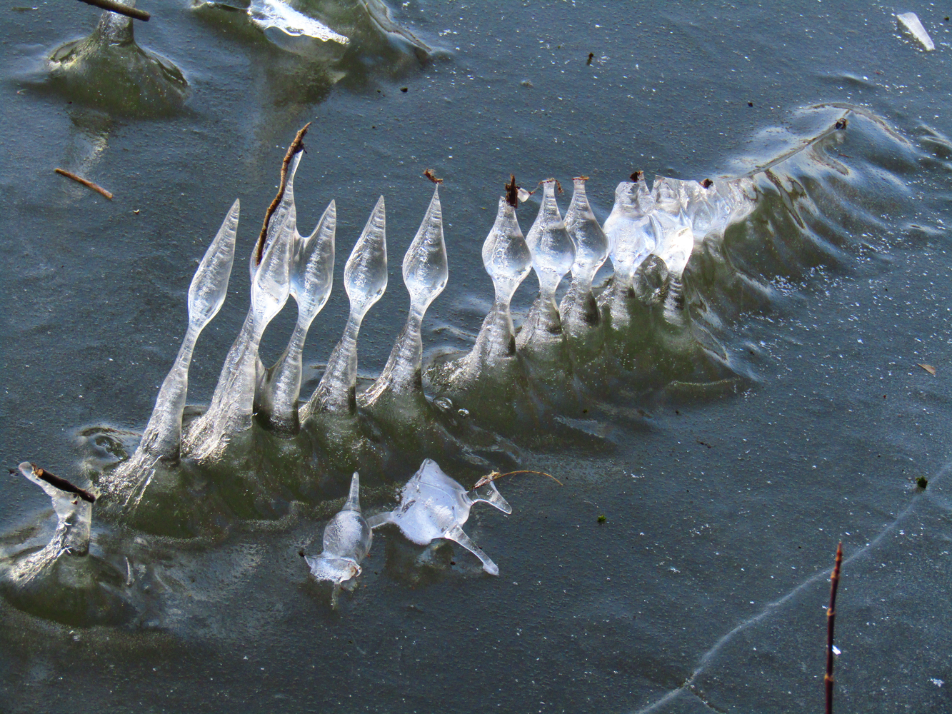 Ledové pohárky na zamrzlém slepém rameni Moravy - Čerťáku Ledové pohárky na zamrzlém slepém rameni Moravy - Čerťáku