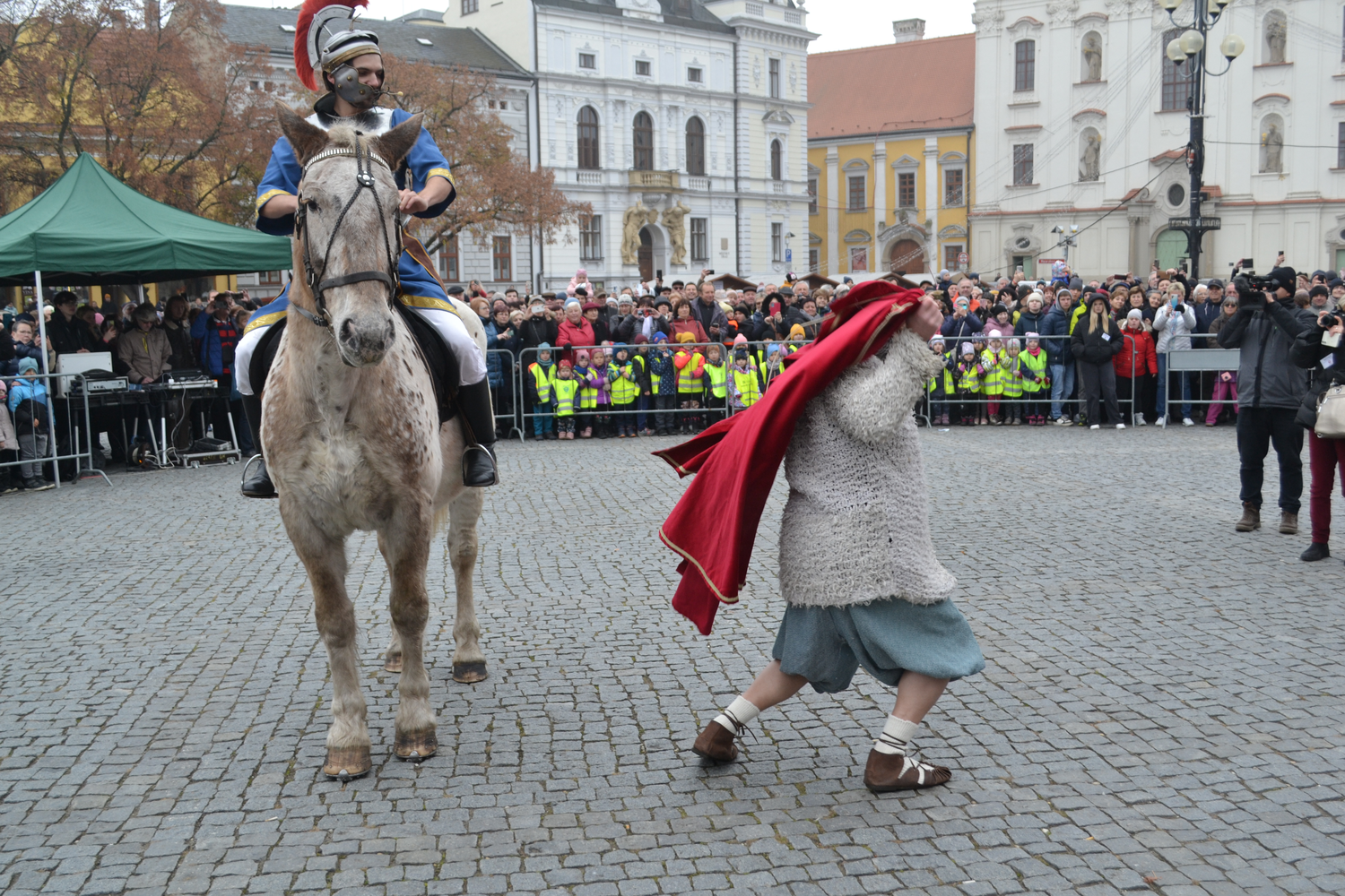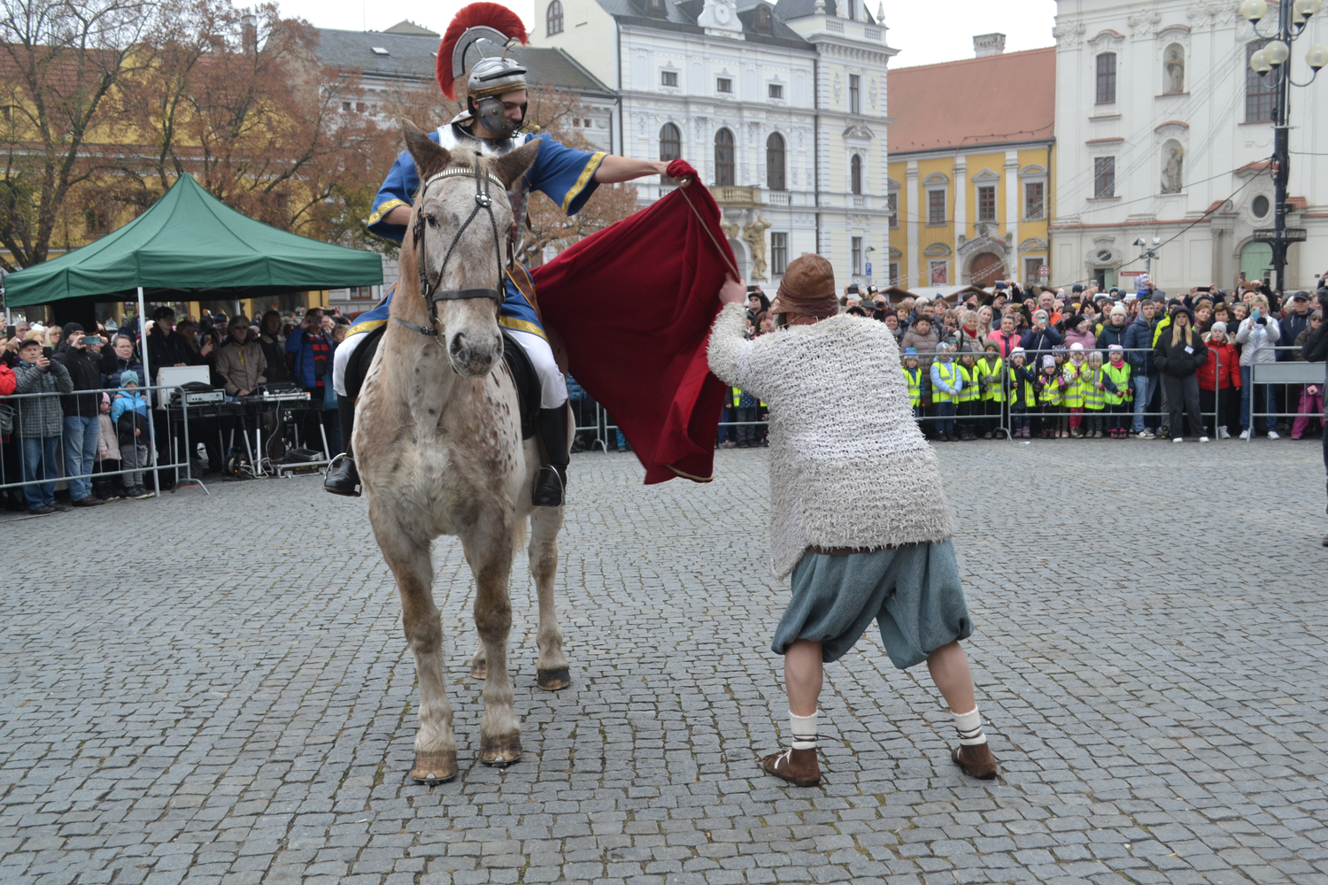 Sv.Martin na Masarykově náměstí při scénce o žebrákovi před akcí žehnaní Svatomartinského vína Sv.Martin na Masarykově náměstí při scénce o žebrákovi před akcí žehnaní Svatomartinského vína