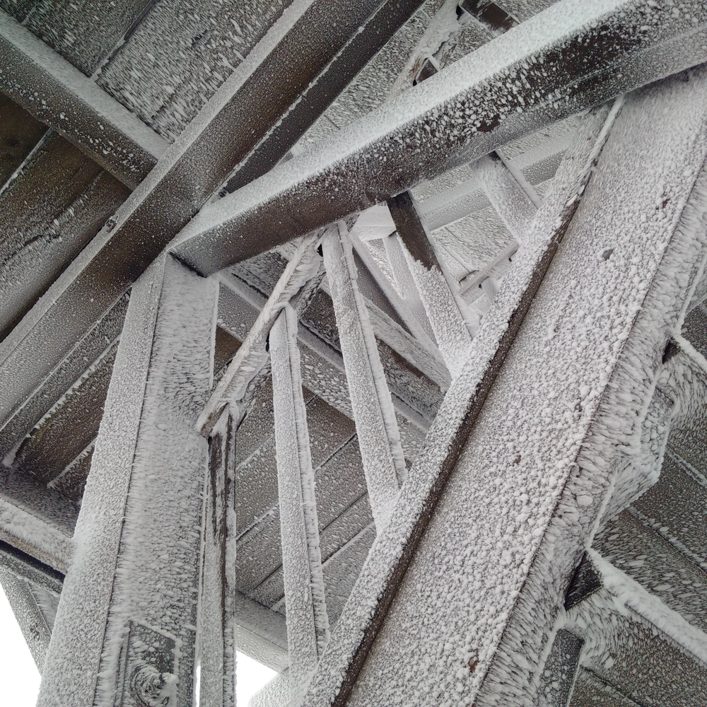 Polodetail rozhledny na Lopeníku pokryté námrazou