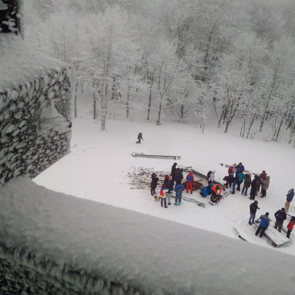 Setkání silvestrovských turistů na Lopeníku, vrcholu Bílých Karpat