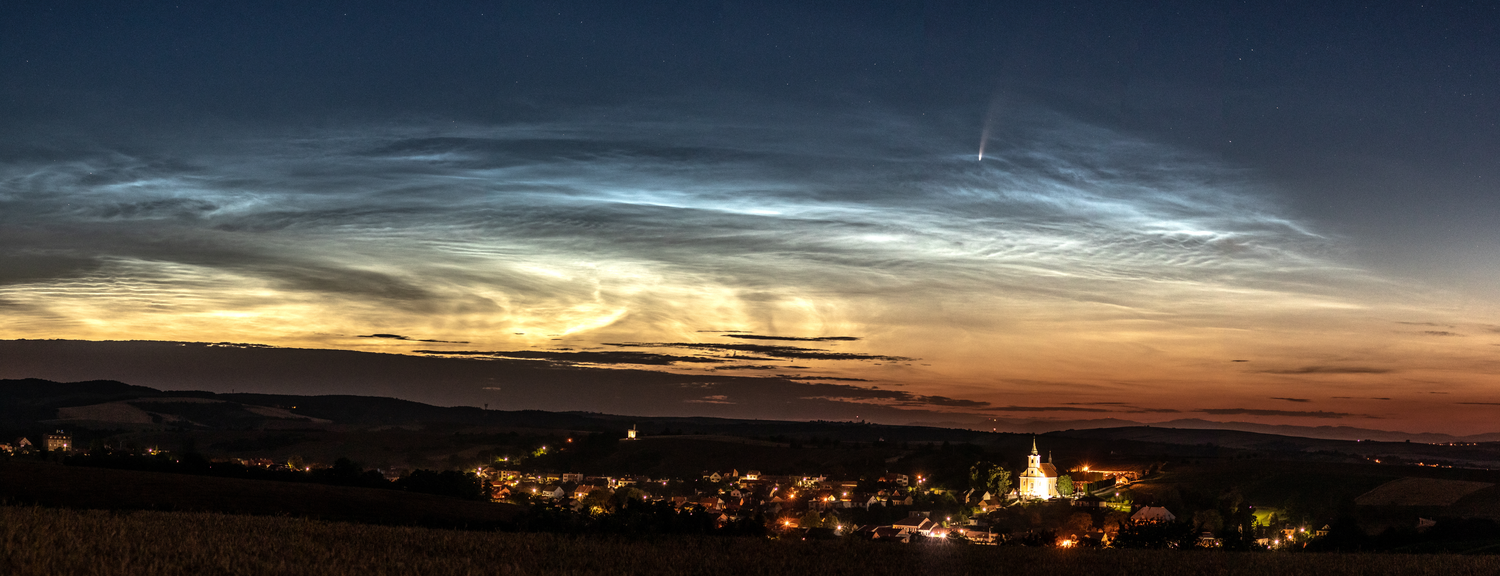 Kometa v Nočních svítících oblacích nad obcí Jalubí Kometa v Nočních svítících oblacích nad obcí Jalubí
