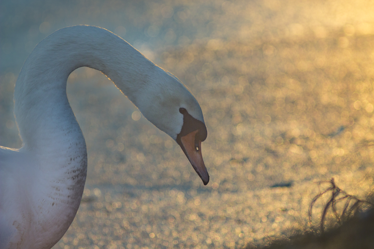 Labuť při západu slunce