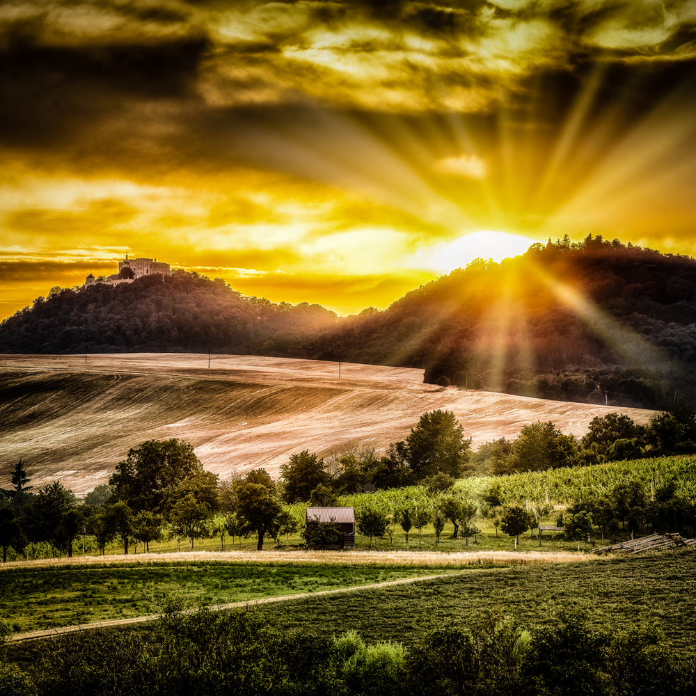 Krajina v západu slunce